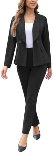 Women's Fall 2 Piece Blazer Outfits Business Casual Work Pants Set for Pockets