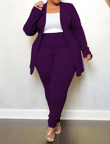 Product Name: Womens Plus Size 2 Piece Outfits Stretchy Elegant Chic Casual Blazer and Pants sets
