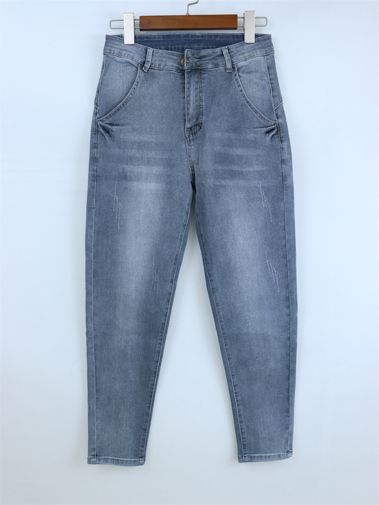 16023 Women's Jeans Spring Style Loose Office Ladies Streetwear Solid Color Light Blue Elastic Bleach Scratch Denim Pants
