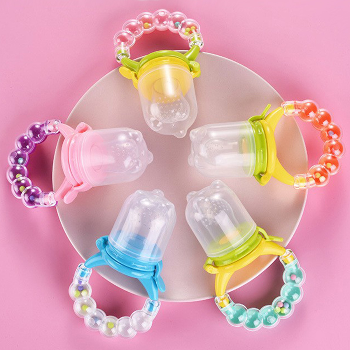 1PC 3 in 1 Baby Fruit Food Kids Nipple Feeding Safe Feeder Vocalization Baby Rattles Pacifier Hand Hold Jingle Shaking Bell