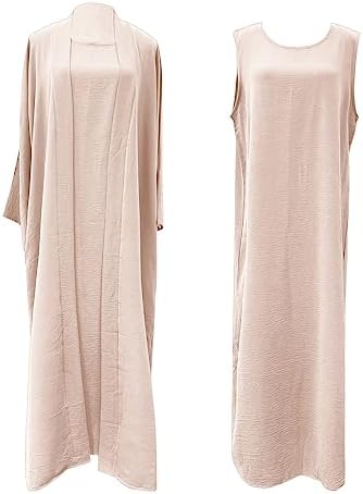 Women's Muslim Abaya Dress Two Pieces Set Islamic Prayer Robe Open Front Flowy Maxi Cardigan Dress