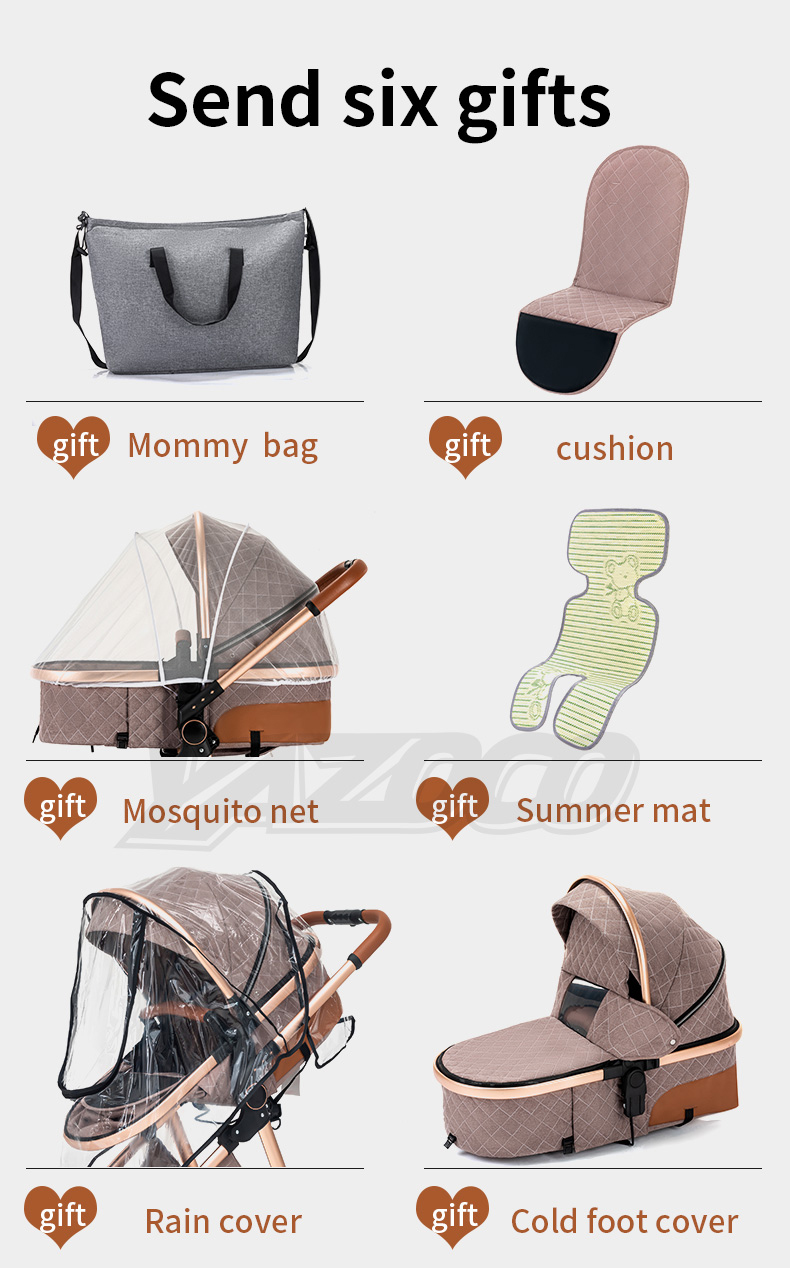 Stroller frame, 2 in 1 basket, baby safety seat, 4 wheels, armrest, basket adapter, foot cover, cup holder, cotton pad