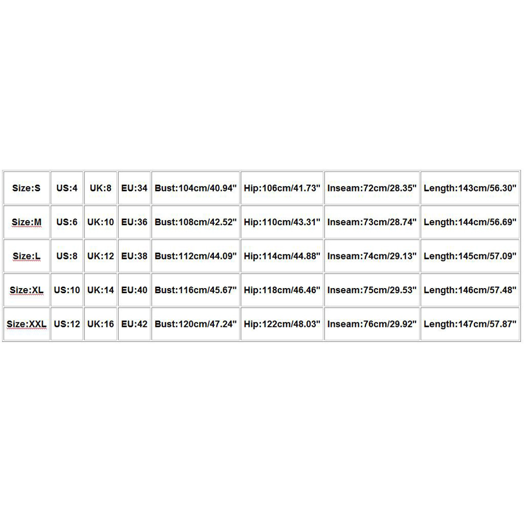Size US UK EU Bust Hip Inseam Length
