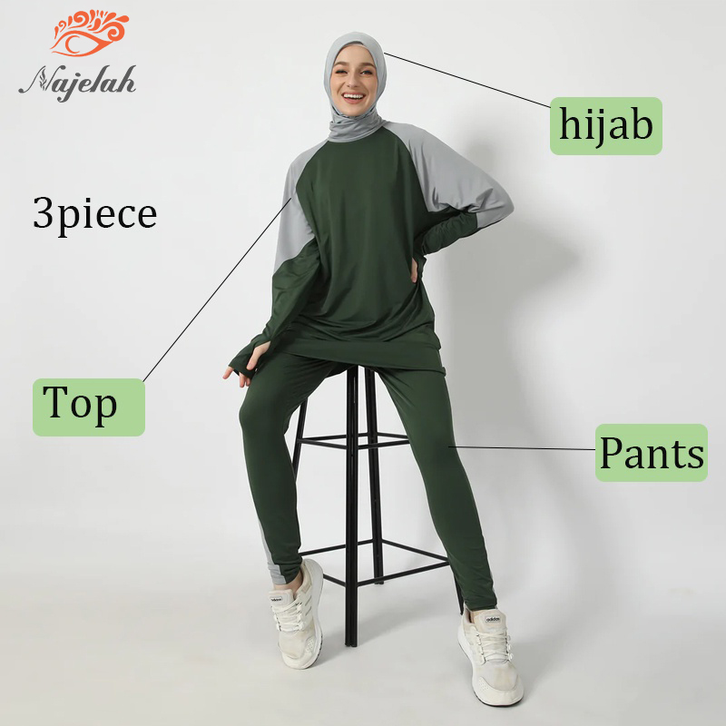 3piece(Top+Pants+hijab)