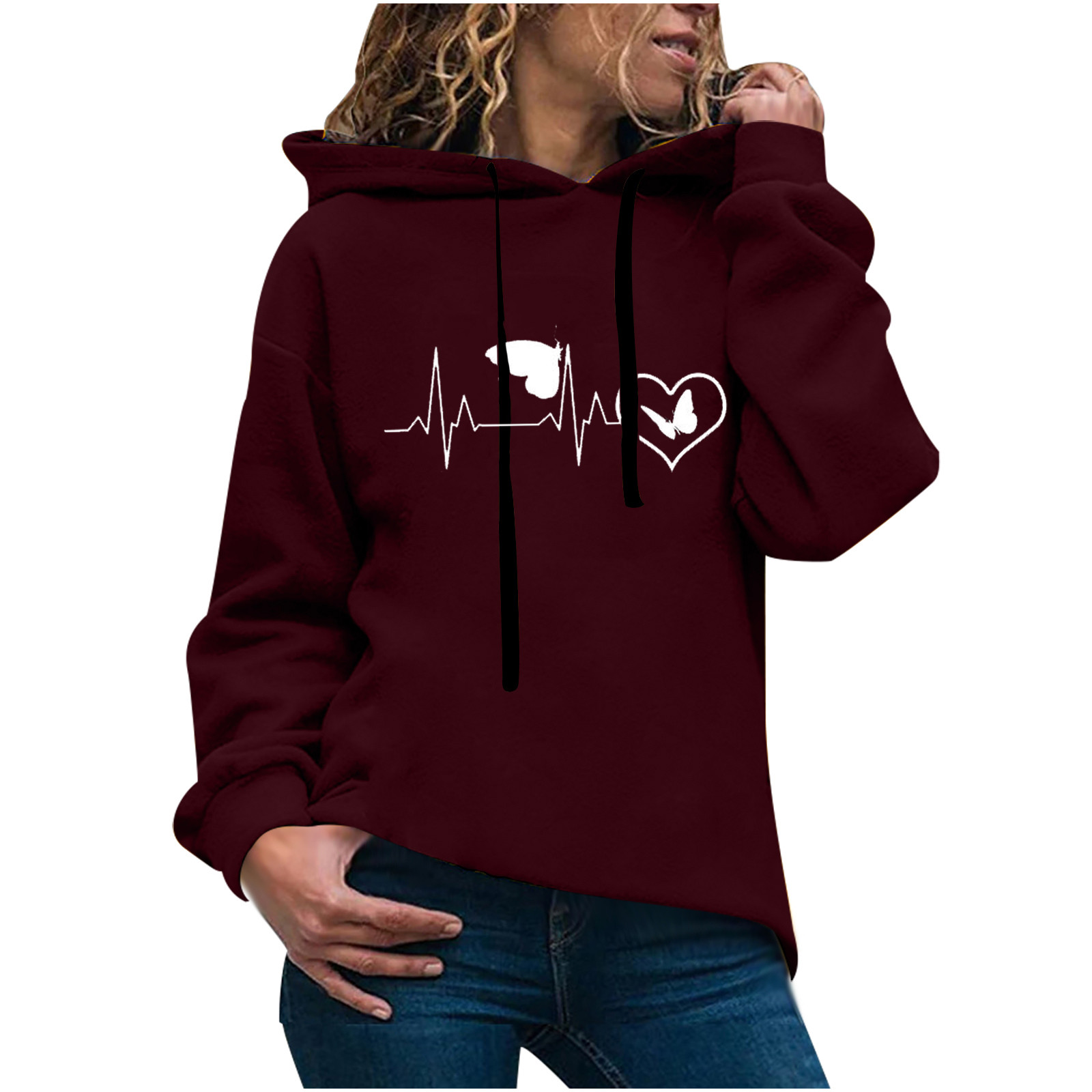 40# Women's Autumn Winter Print love Hoodie Long Sleeved Comfortable Pullover Hoodies Tops Leisure Keep warm Sweatshirts свитшот