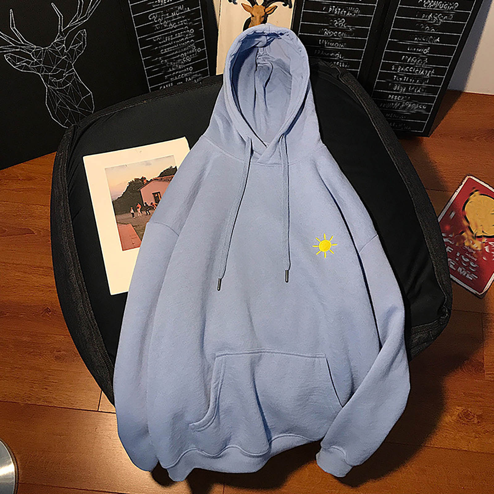 40# Women's Embroidery Hoodies Solid Color Printed Sweatshirts Long-sleeved Tops Casual Loose Plus Size Clothing Vetemznt Femme