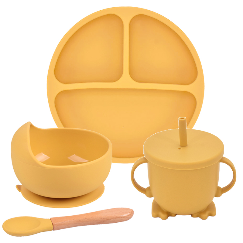 4Pcs Baby Silicone Plate Cup Bowl Spoon Set Bpa Free Baby Folding Dishes Portable Feeding Tableware for Children