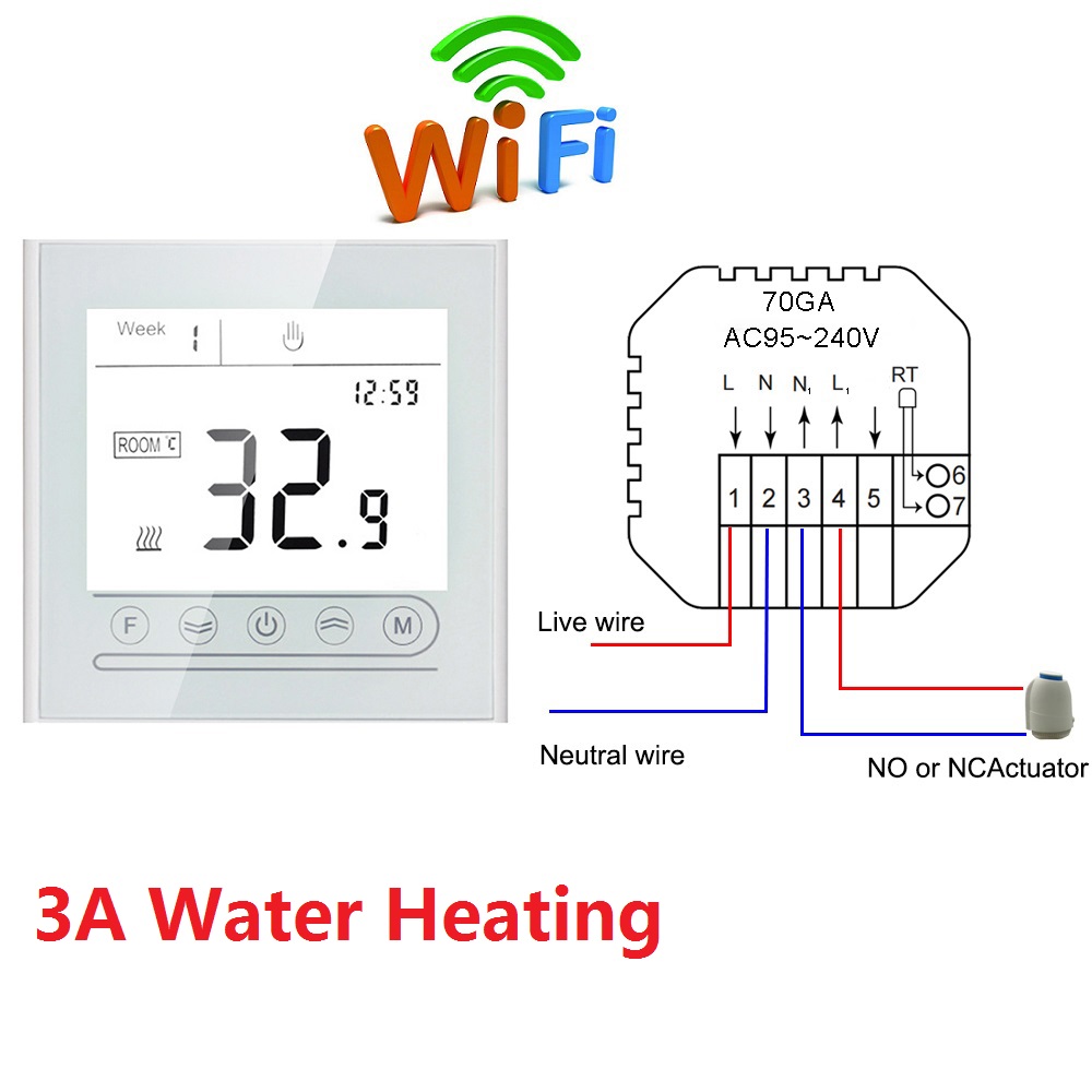 MK70-GA-WiFi: Water floor heating to control NO NC actuator or the electromagnetic valve with WiFi function, Voice control, 3A.