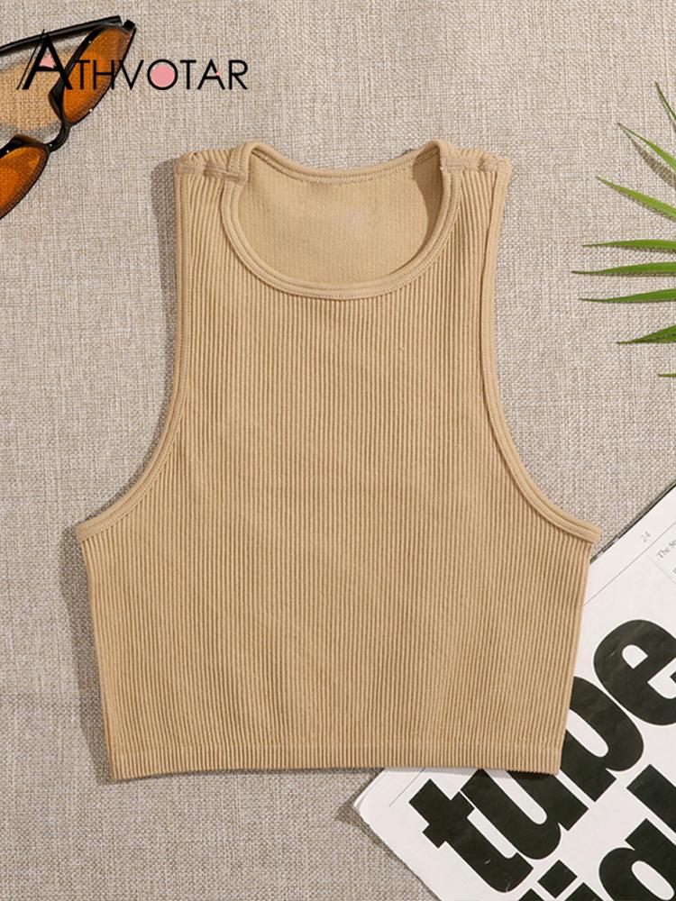 ATHVOTAR 14 Colors Women Crop Top Seamless Casual Streetwear White Bra Rib Sleeveless Top Summer Tank Tight Knit Tee Female Tops