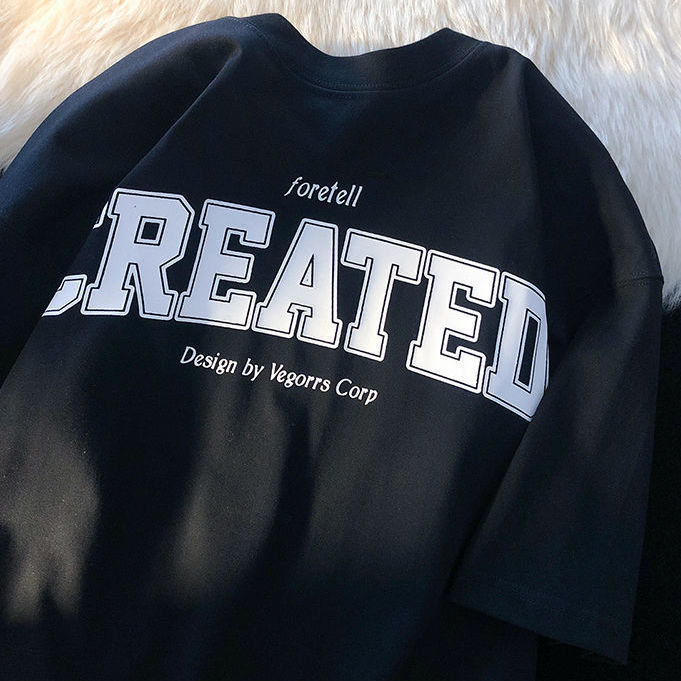 American retro Hong Kong style short-sleeved t-shirt men's ins loose all-match bf lazy wind half-sleeved top T-shirt y2k top