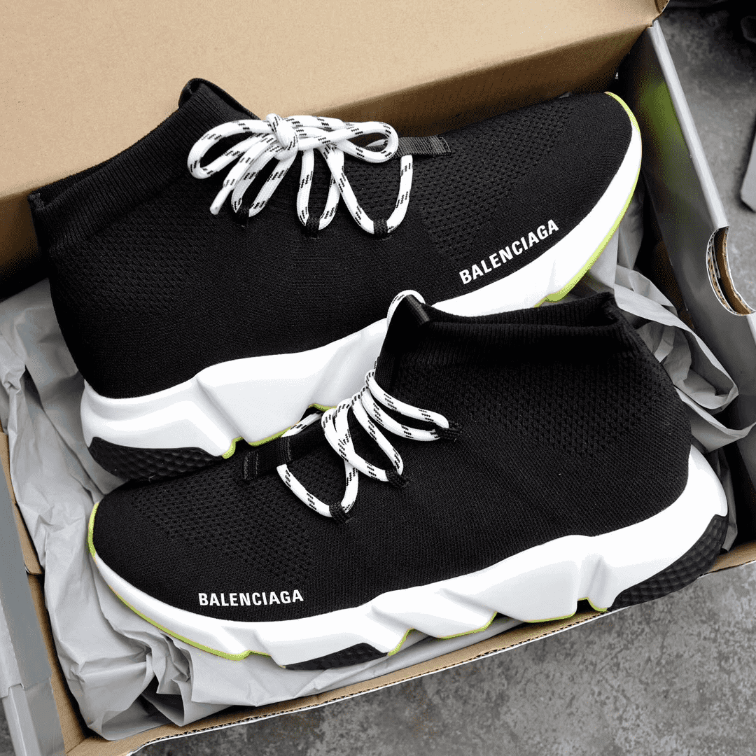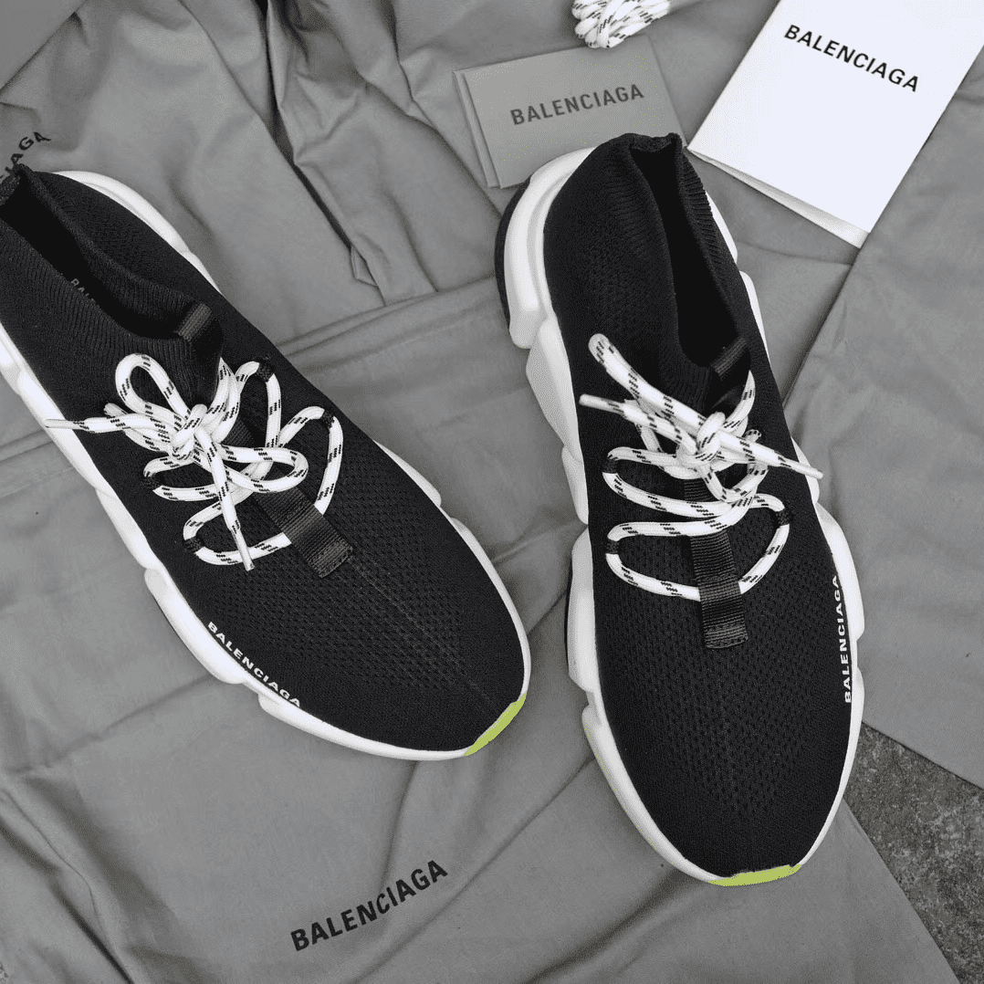 BALENCIAGA SPEED TRAINER LACE UP BLACK WHITE – BB16