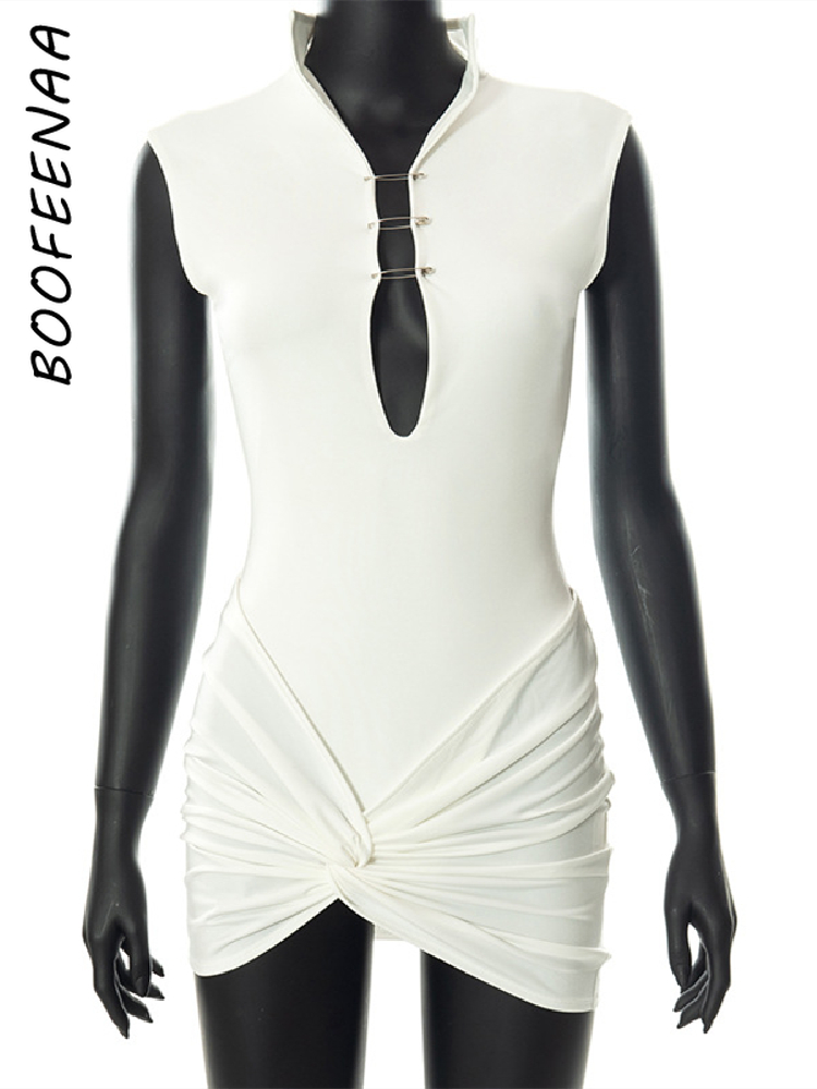 BOOFEENAA 2 Piece Set Women Skirt and Bodysuit Top Summer Trendy Outfits Sexy Party Club Wear White Dress Sets C85-DZ24