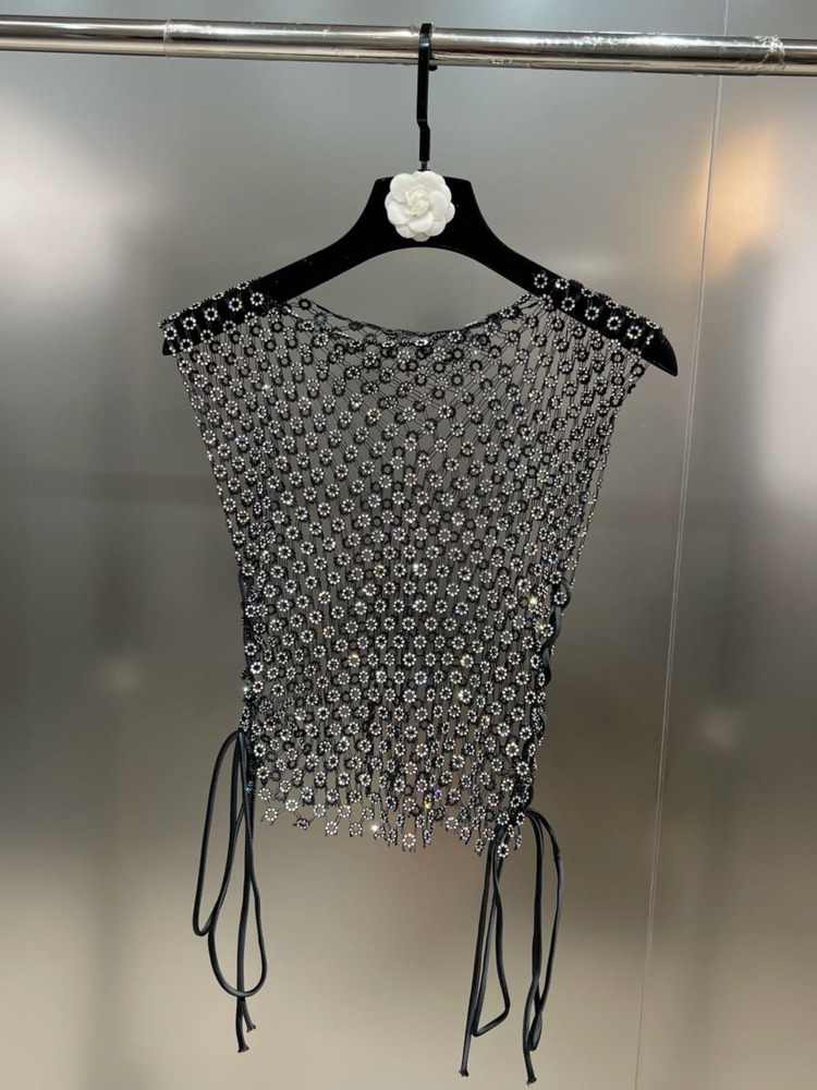 DEAT summer spliced Diamonds round neck sleeveless pullover sexy see throw T-shirt WW97601L