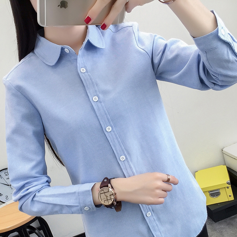DIYUS Autumn Women Tops And Blouse Long Sleeve Cotton Oxford White Blue Woman Office Shirts Good Blusas Lady Tops