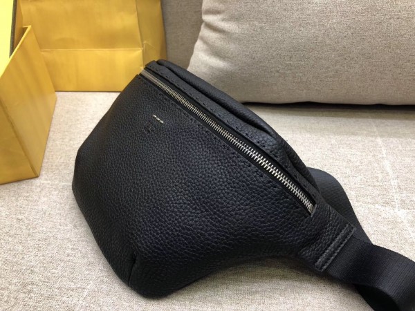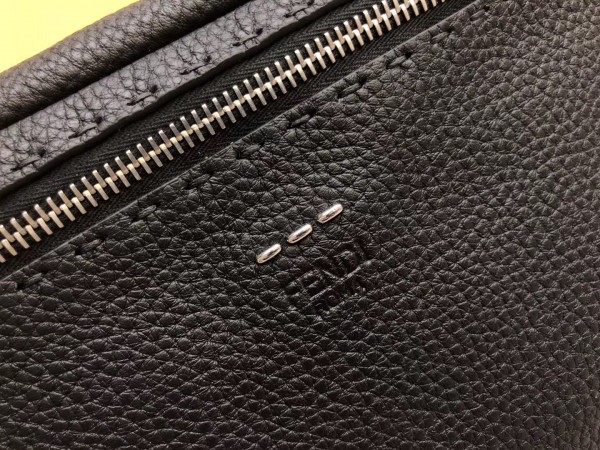 This Fendi Belt bag is made of blue Romano leather. Finished with “Metal Stitch” hand-sewn stitching, the bag attaches to the waist with the buckle belt strap or functions.