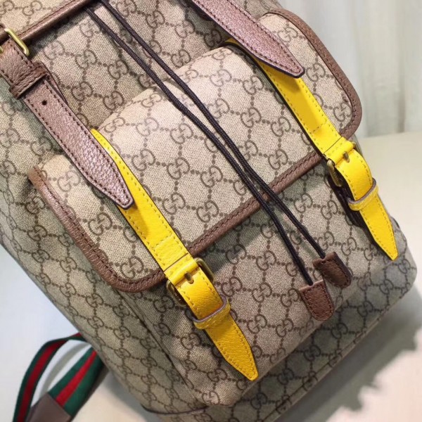 – Beige/ebony soft GG Supreme, crafted from a coated microfiber fabric, with brown leather trim