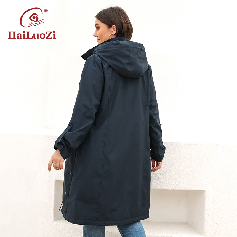 HaiLuoZi Women's Spring Coat High Mid-Length Plus Size Women Jacket Casual Hooded Windproof Outwear 9722