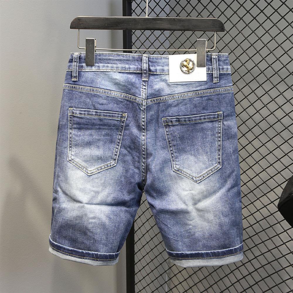 Jump drill summer thin section denim shorts men's slim stretch pants all-match trend thin section five-point pants