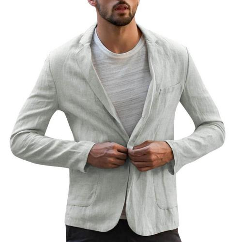 Men Autumn Solid Color Long Sleeve Pockets Cotton Linen Slim Blazer Coat Jacket