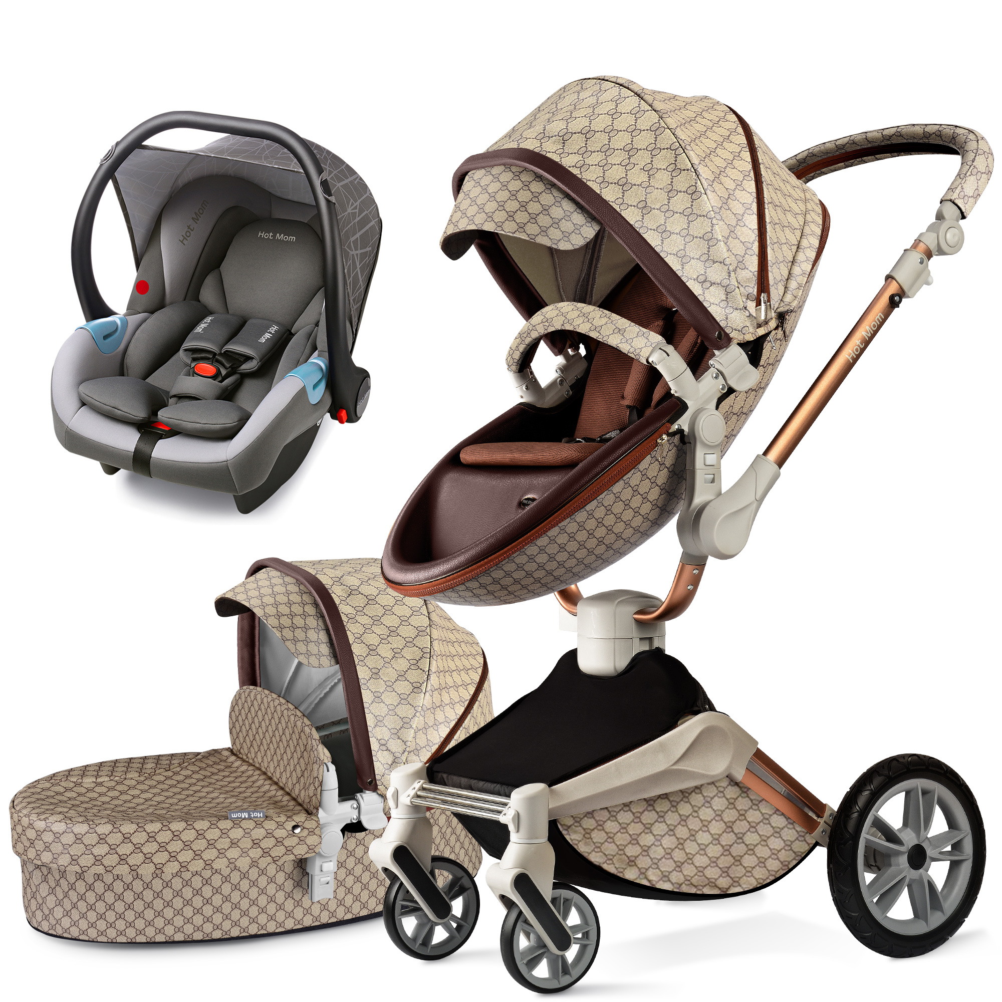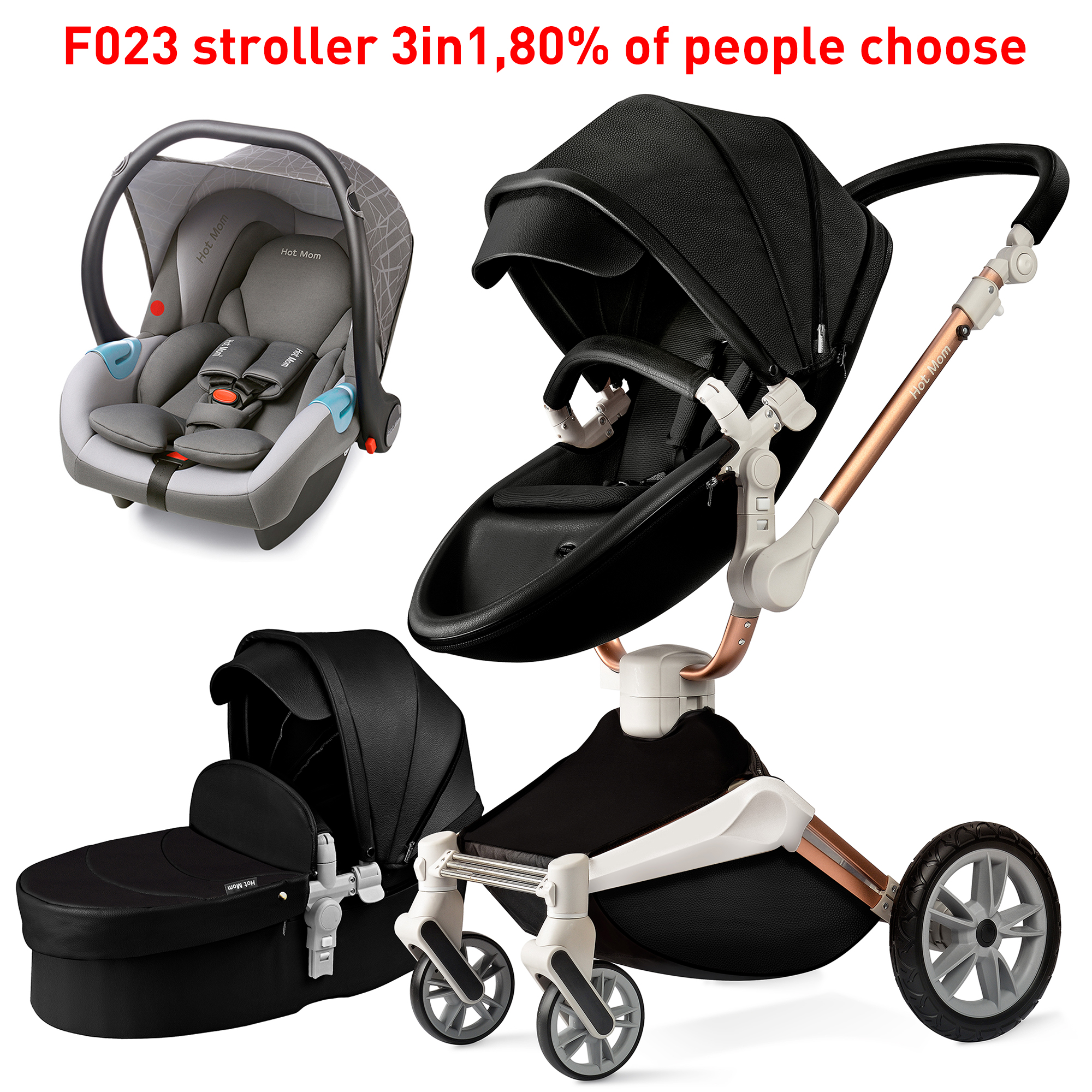 The 3 in 1 stroller,it include the stroller seat+bassinet and car seat