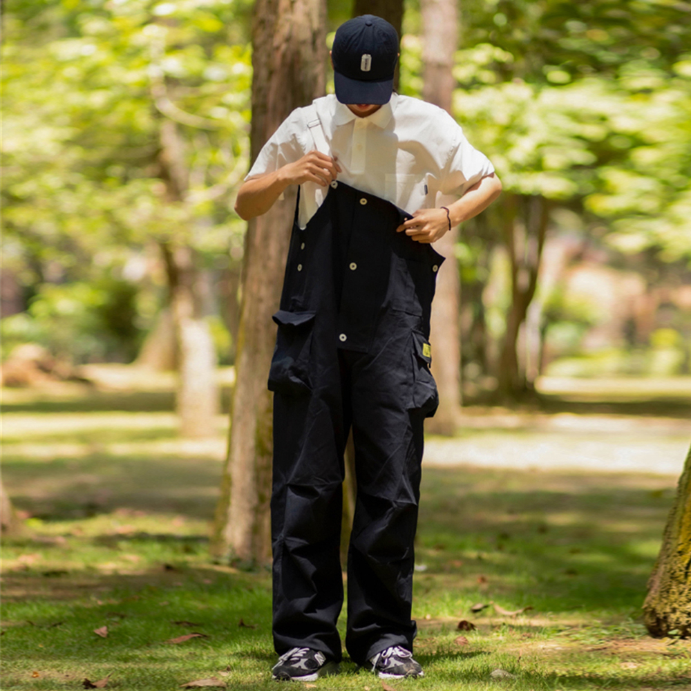 Multi-Pocket Overalls Mens Safari Style Contrast Paneled Dungarees Loose Casual Jumpsuit Pants Men Trousers