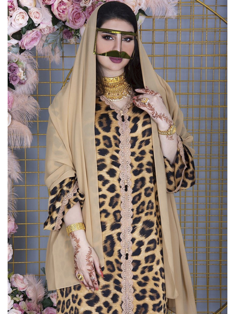 Muslim Ladies Leopard Robe Dress Middle East Dubai Arab Abaya Islamic Dress Tall Morocco Kaftan Turkish Long Skirt