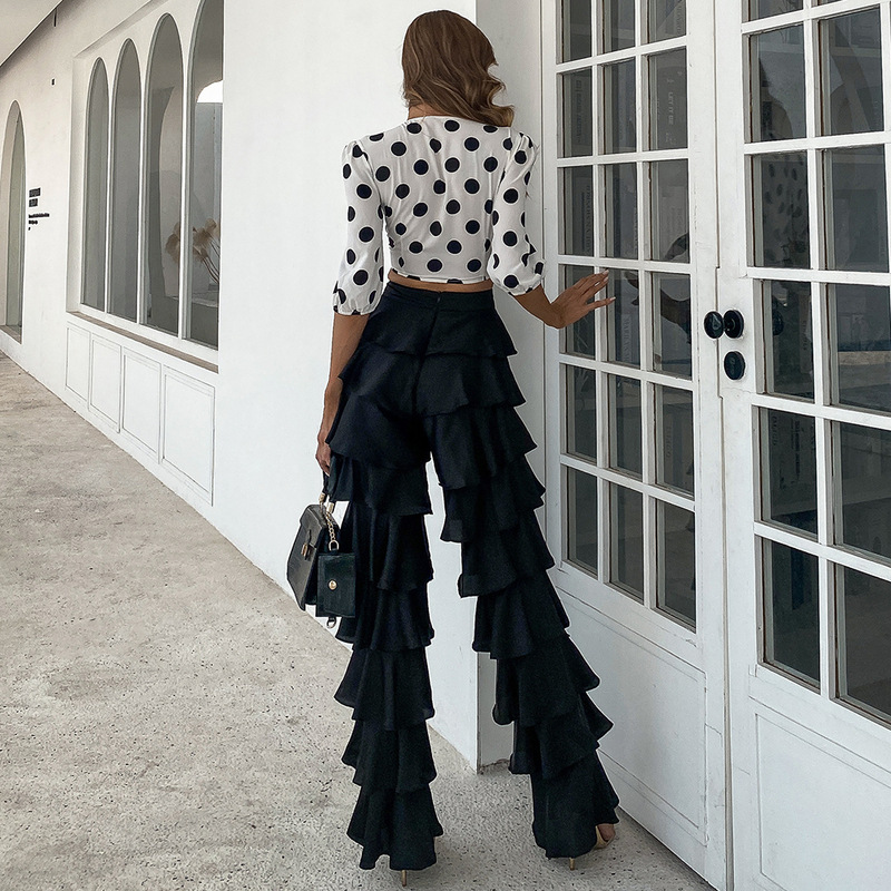Muslim Women Black Trousers Loose Straight Pants High Waist Ruffled Pants Musulman Turkish Islam Clothing Female Y1126