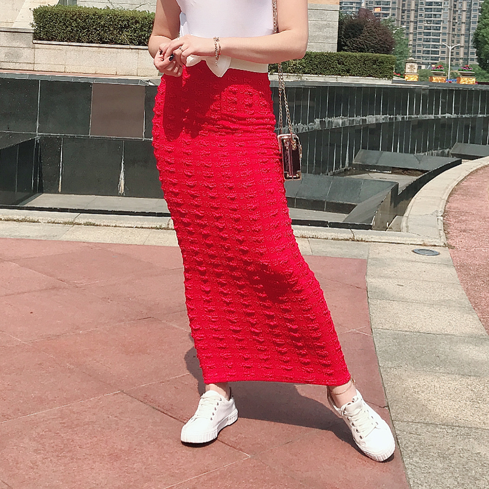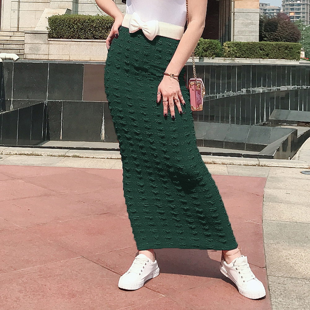 Muslim Women Maxi Skirts High Waist Buttons Knitted Stretch Bodycon Sheath Long Skirt Solid Femme Pencil Skirts Abaya Islamic