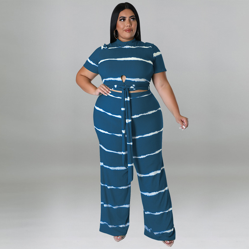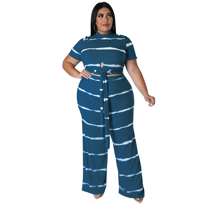 Perl Stripe Plus Size Two Piece Sets Short Loose Women Summer Outfits Casual Female Clothing Matching Tracksuit Xl-5xl