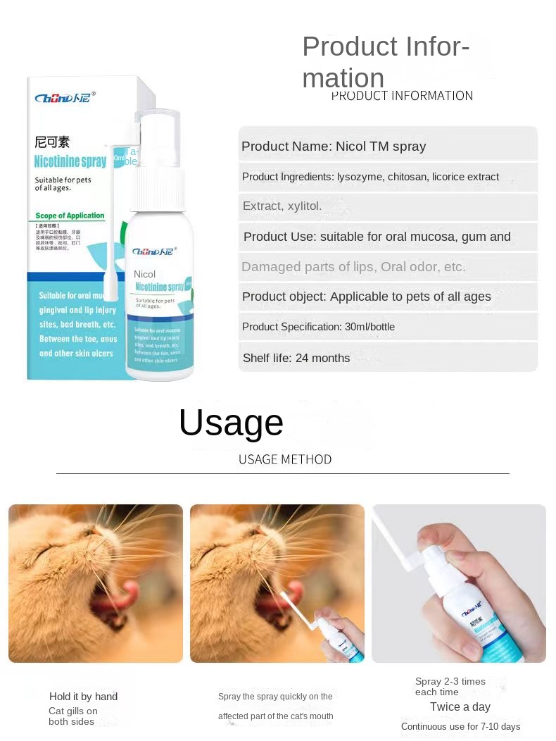 Pet cat stomatitis spray 30ml cat drooling, bad breath, stomatitis, gum swelling, inflammation, periodontitis
