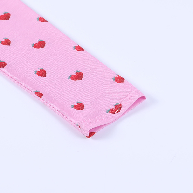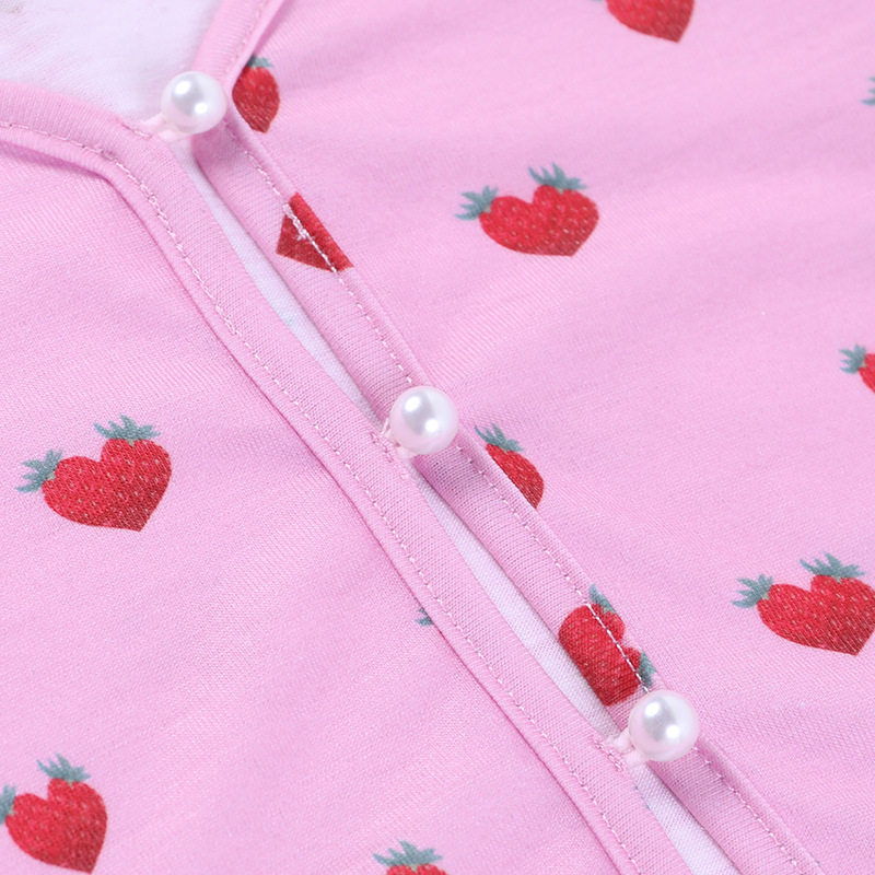 Pink Crop Tops V Neck Full Sleeve Hollow Out Strawberry Print Solid Pearl Buckle Short Cute T-Shirts Women Female Summer Autumn
