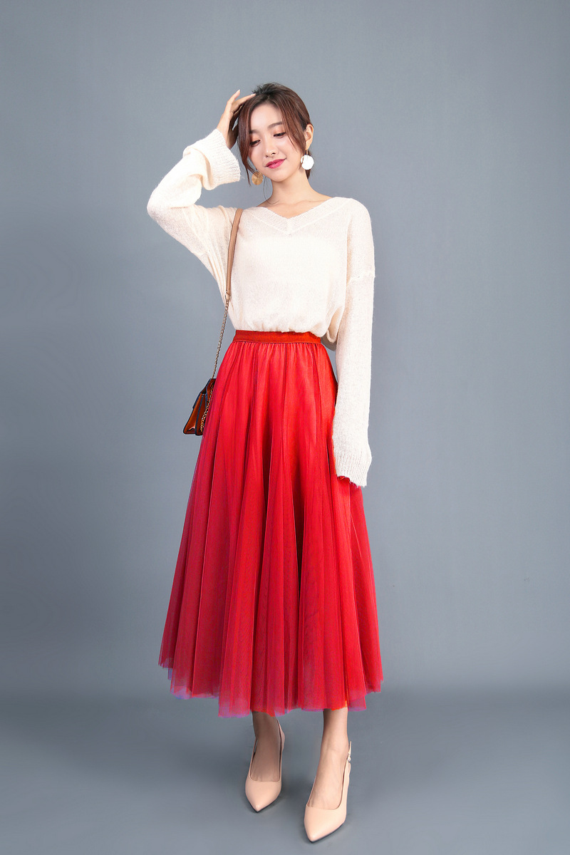 Spring Big Swing Puffy Ankle Long Skirt High Waist Slim Fairy Skirt Mesh Skirt A-line Skirt Harajuku Vintage Y2k Clothes