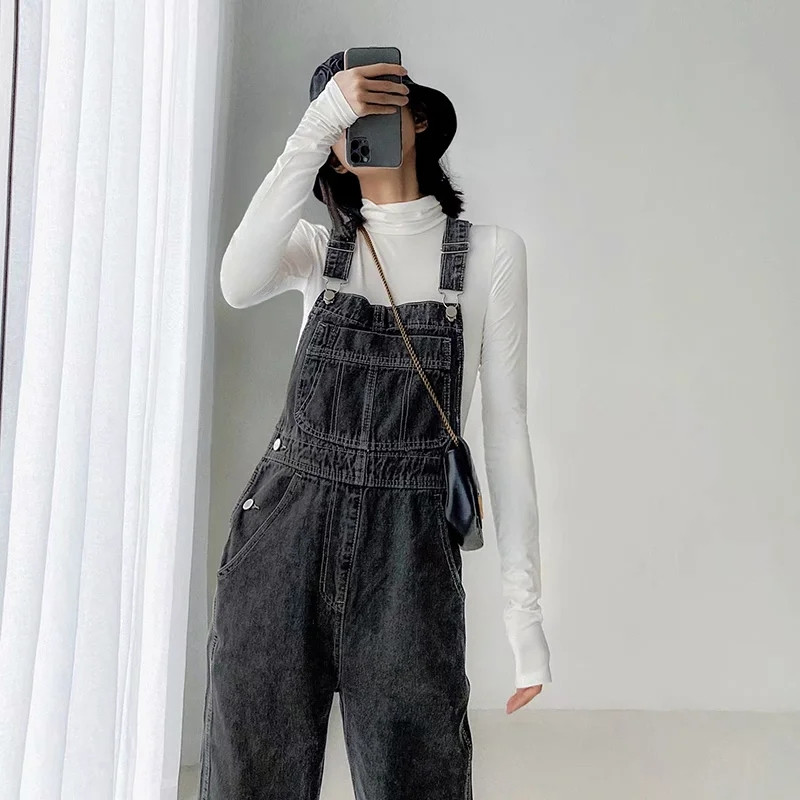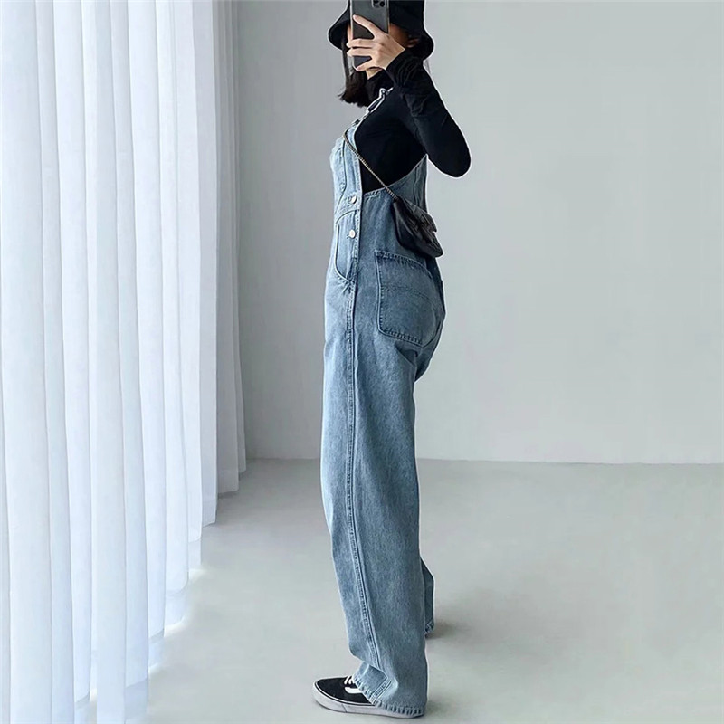 Style Denim Jumpsuits Women Loose Solid Retro Washed Streetwear Chic Ladies Casual Spring Autumn Overall