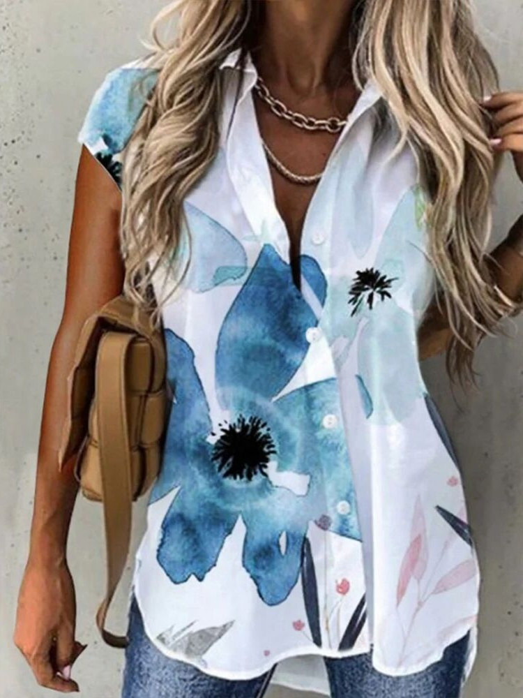 Summer Women Shirts Elegant Turn-down Collar Button Short Sleeve Casual Office Blouses Tops