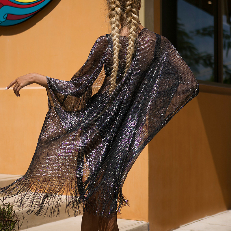 Tassel Gold Bikini Cover Up Sexy Beach Dress Tunics for Women Beachwear Summer See Through Swimsuit Cover-ups Kaftan New