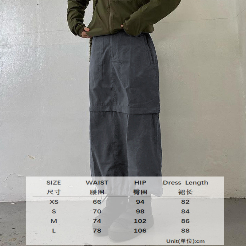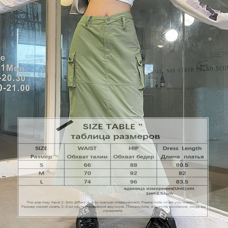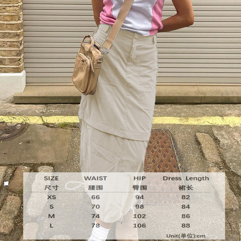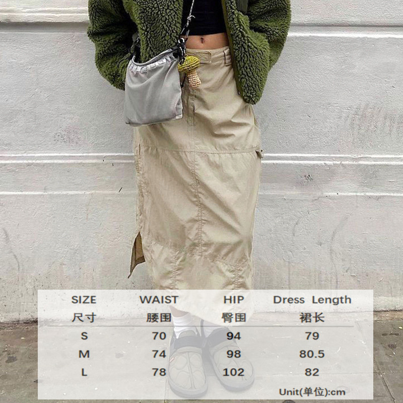 WeiYao Khaki Casual Long Cargo Skirts Women Stitching Vintage Baggy Streetwear Outfits Split Low Waist LooseSize Skirt