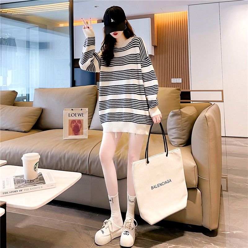 Women Knitted Basic Long Sleeve Striped Sweaters O-Neck Pullovers Female Sweater Autumn Winter Coat Lady Unif Jumper Top