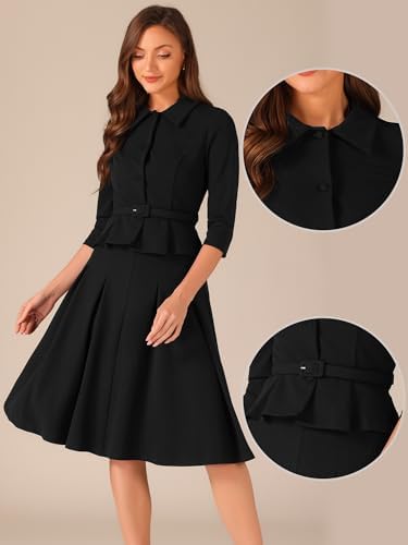 Allegra K Business Skirt Suit Sets for Women's 2 Piece Outfits Office 3/4 Sleeve Blazer Jacket Pleated Skirts