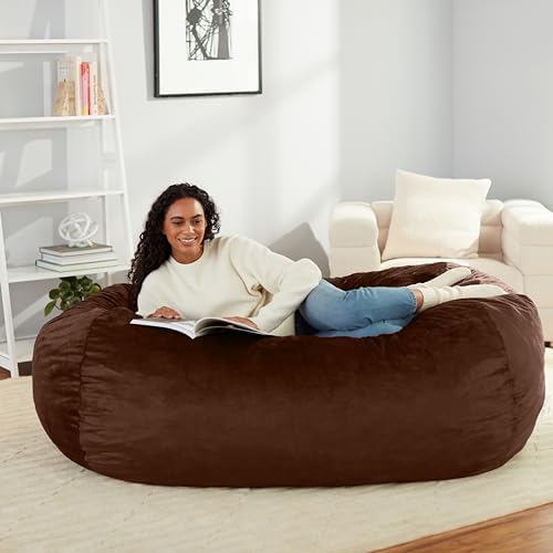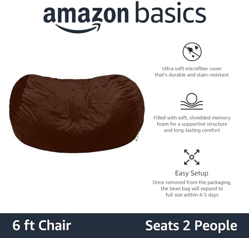 Amazon Basics Memory Foam Filled Bean Bag Lounger with Microfiber Cover, 6 ft, Brown, Solid