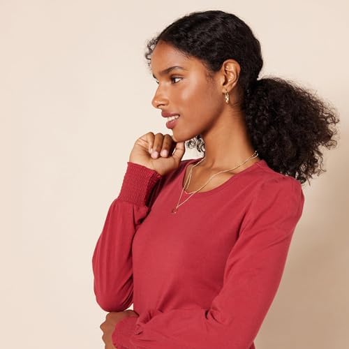 Amazon Essentials Women's Long-Sleeve Crewneck Smocked Cuff T-Shirt