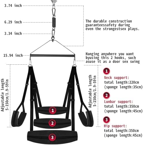 BDSM Sex Swing Couples Sex Toys, Adjustable Sex Furniture for Bedroom Sex Straps with Soft Plush Padding Mat and Supportive Handle, Adult Sex Bondage Sling Restraints Toys, Holds Up 300Lbs
