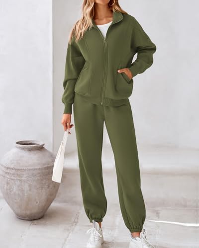 BTFBM Womens Sweatsuits 2 Piece Set 2024 Fleece Long Sleeve Zip Up Sweatshirt Sweatpants Winter Fall Outfits Jogger Sets