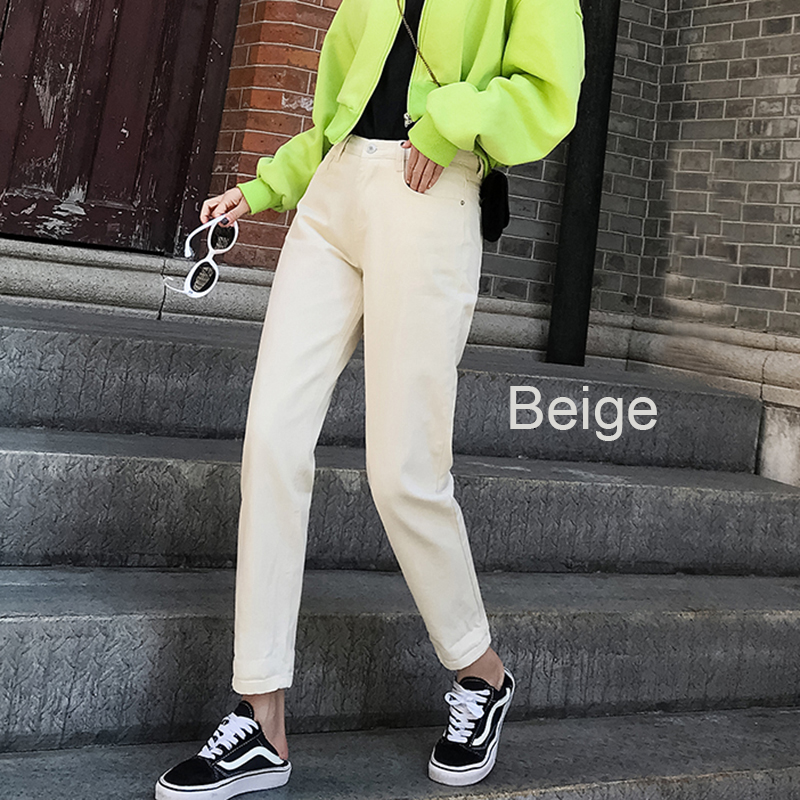 cotton White Jeans for Women High Waist Harem Mom Jeans spring plus size black women jeans denim pants beige blue