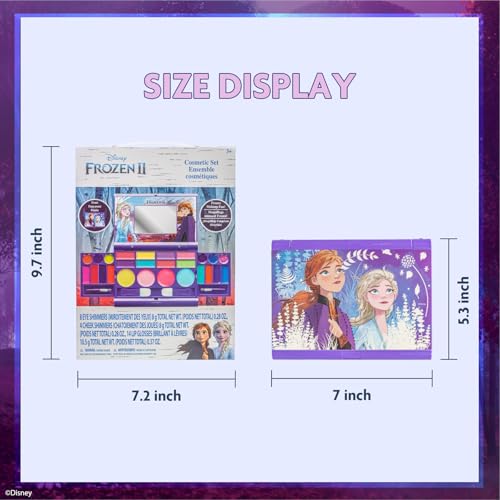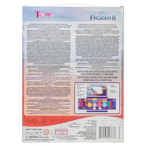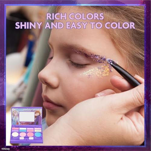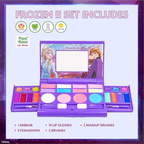 Disney Frozen Elsa Anna Cosmetic Compact Set with Mirror 14 lip glosses, 8 Eye Shadow, 4 Blushes, 4 Brushes Colorful Portable Washable Makeup Beauty Kit Box Set for Girls Kids Toddler