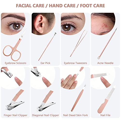 Hanaive 6 Set Manicure Set Nail Clippers Pedicure Kit 48Pcs Stainless Steel Grooming Kit 8 in 1 Professional Nail Care Tools with Luxurious Travel Case for Men Women Nail Care(Rose Gold)