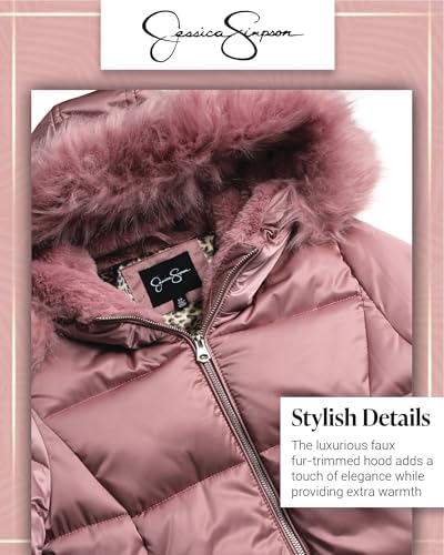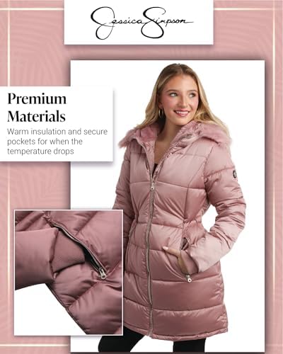 Jessica Simpson Women's Long Puffer Jacket - Quilted Winter Coat with Faux Fur Trim Hood - Insulated Coat for Women (S-XL)