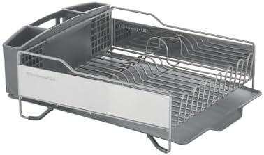 KitchenAid dish racks come in multiple sizes and configurations, from compact to full size, with a stemware rack that protects glassware from scratches and breakage, removable utensil caddies, and more. Strong and durable, these dish racks are rust-resistant and designed to direct water into the sink. Soft, non-slip feet secure the racks and protect sinks and countertops.