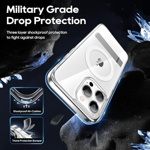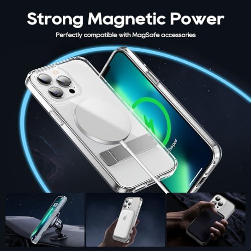 Magnetic Case for iPhone 13 Pro Case 6.1-Inch, Slim Kickstand with Screen Protector Compatible with Magsafe Shockproof Crystal Clear Cases Phone Case Cover, Clear