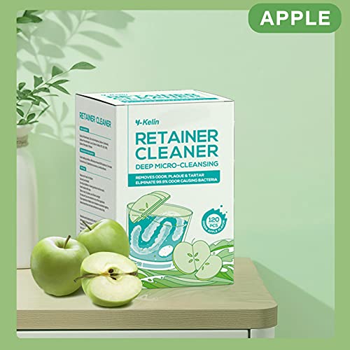 YKL Retainer Cleaner & Denture Cleaning Tablets for Invisalign Cleaner, Fresh Apple Flavor (120 Count)