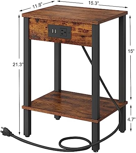 I purchased these end tables for our guest room and they are perfect. I love the fact there are 2 USB plug and a 3 prong plug plug. They are not overly large but perfect for a smaller space.They were easy to put together, however,use your own screw driver!